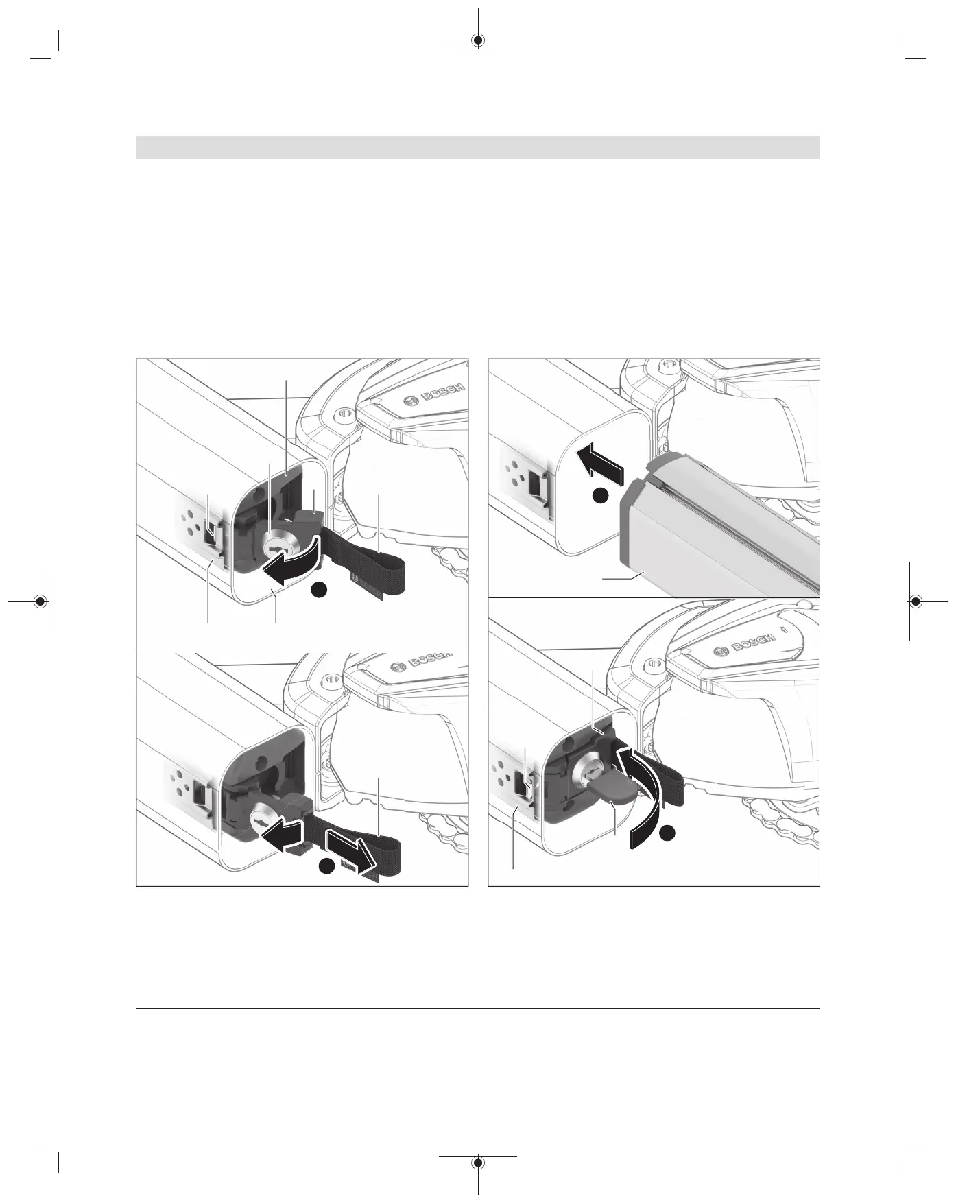 cerradura de la batería(2) con la llave(1), retire