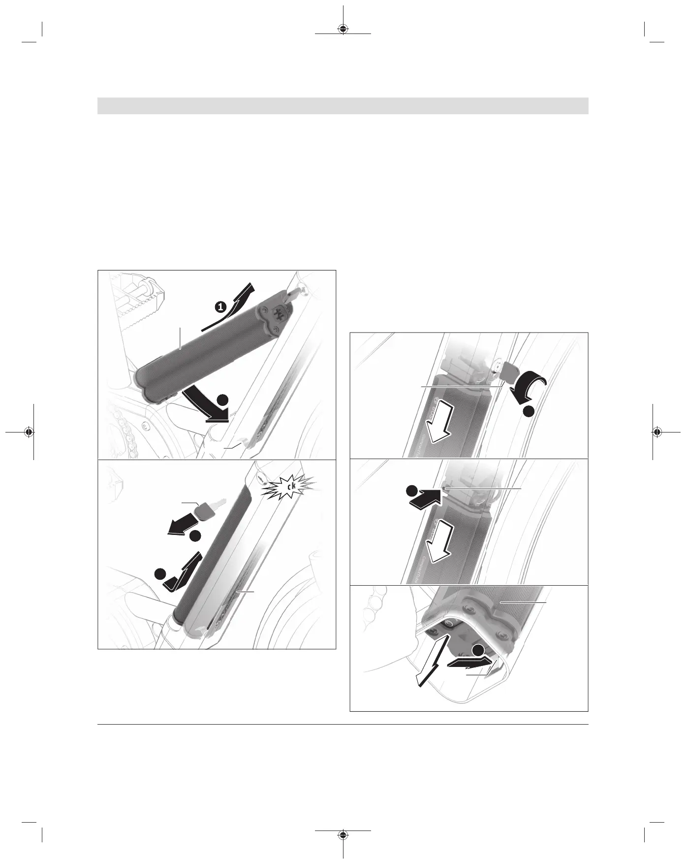 ❷ Gire la batería en el cuadro de la bicicleta hasta