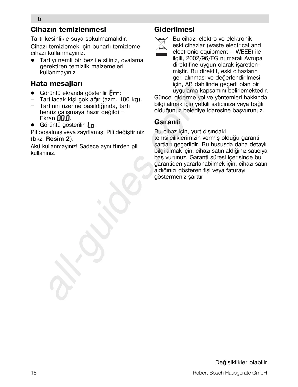 Akü kullanmayýnýz! Sadece ayný türden pil