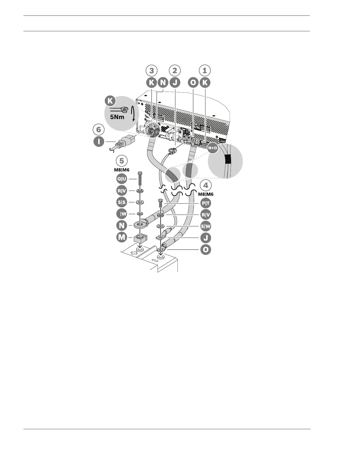 connection terminal, using the other M8 self-locking nut (K). Tighten with torque 5Nm.