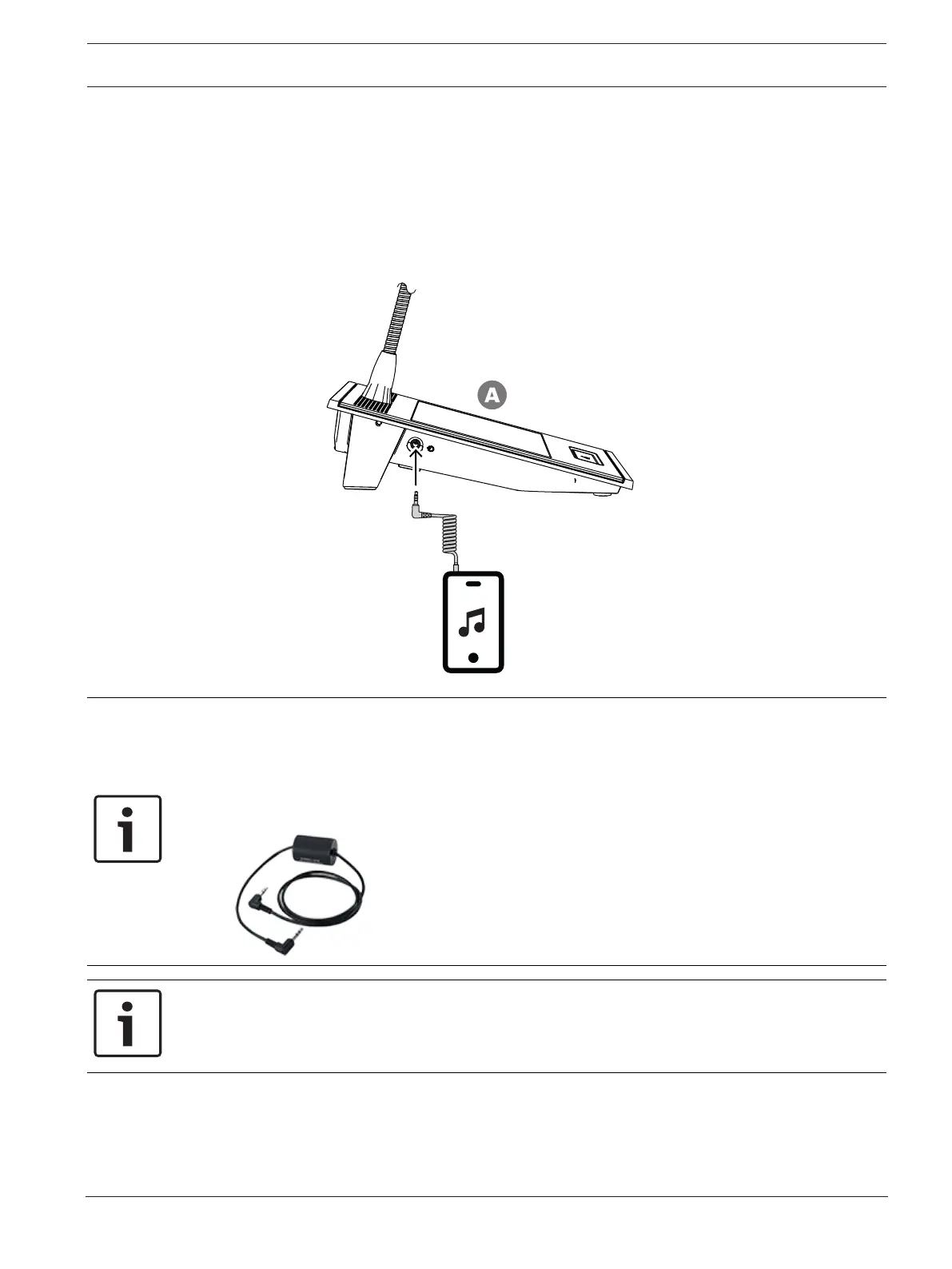 On the left side of the call station is a 3.5mm stereo socket. This is an input for a background
