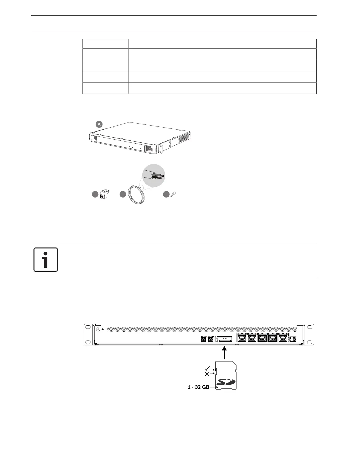 No tools, SD‑card or Ethernet cables are provided with the device.