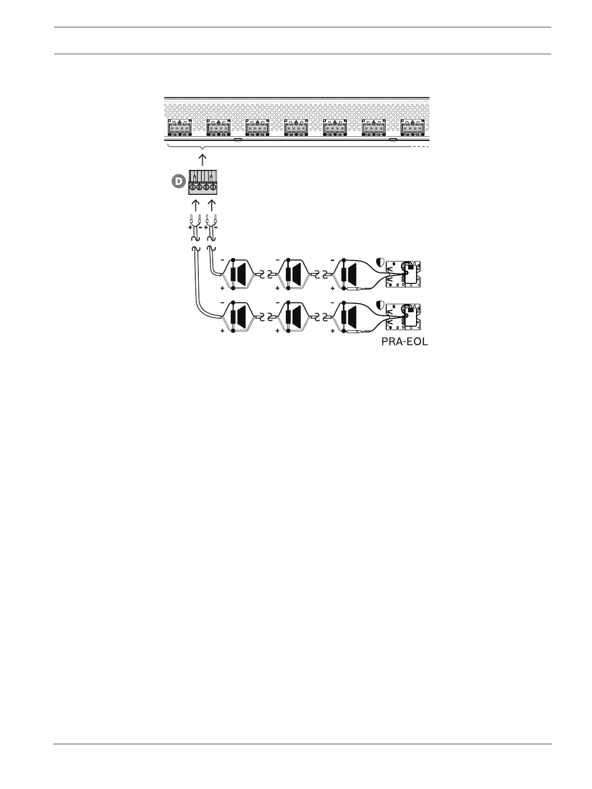 4. Connect an end-of-line device to the end of loudspeaker line B. Loudspeaker lines A and