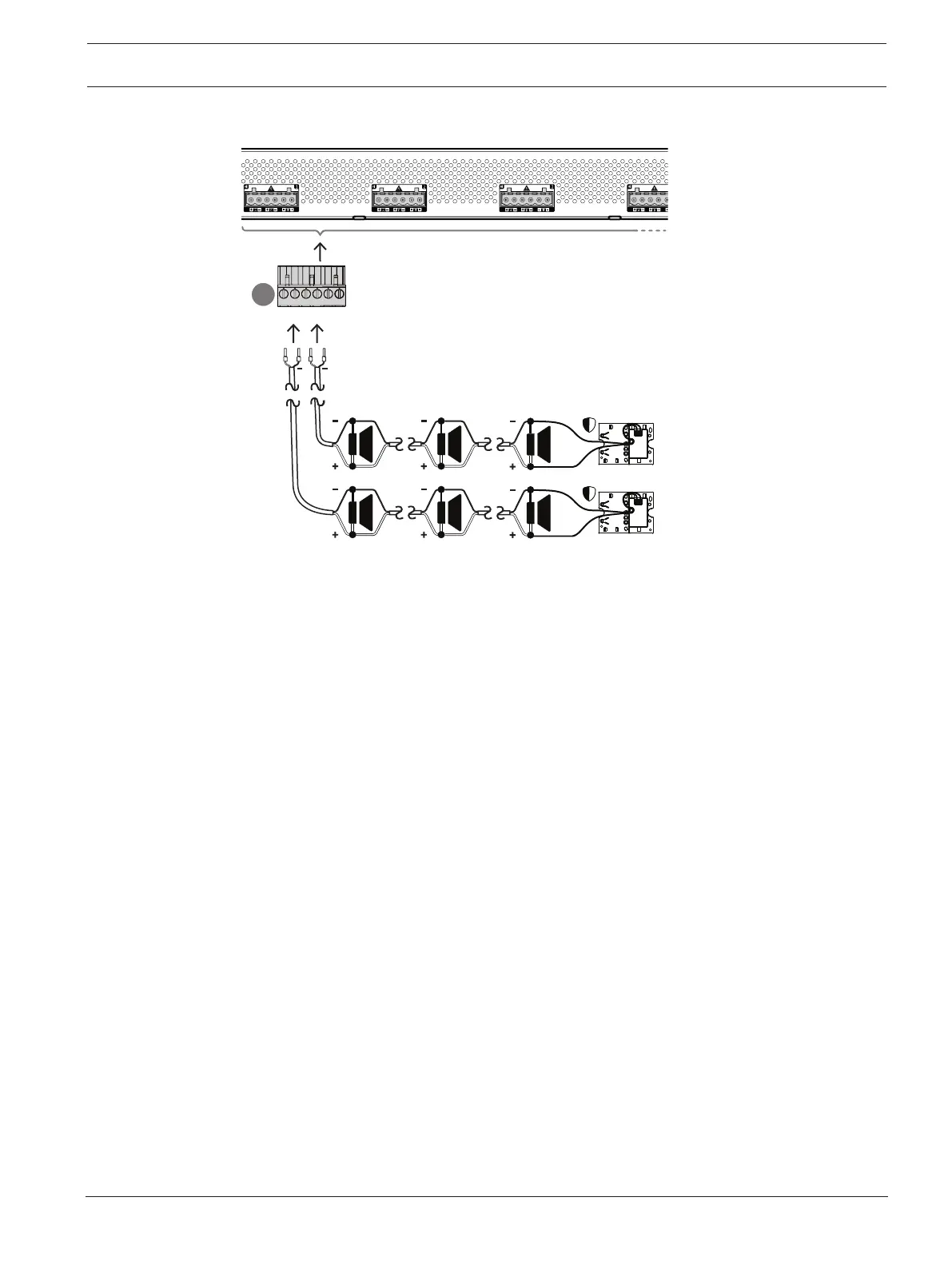 4. Connect an end-of-line device to the end of loudspeaker line B. Loudspeaker lines A and