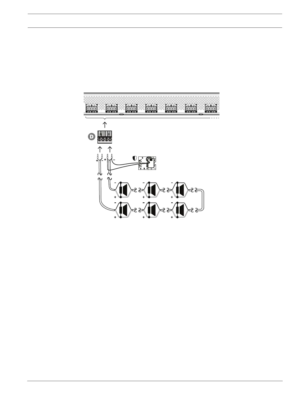4. Connect an end-of-line device to the end of loudspeaker line B. Loudspeaker lines A and