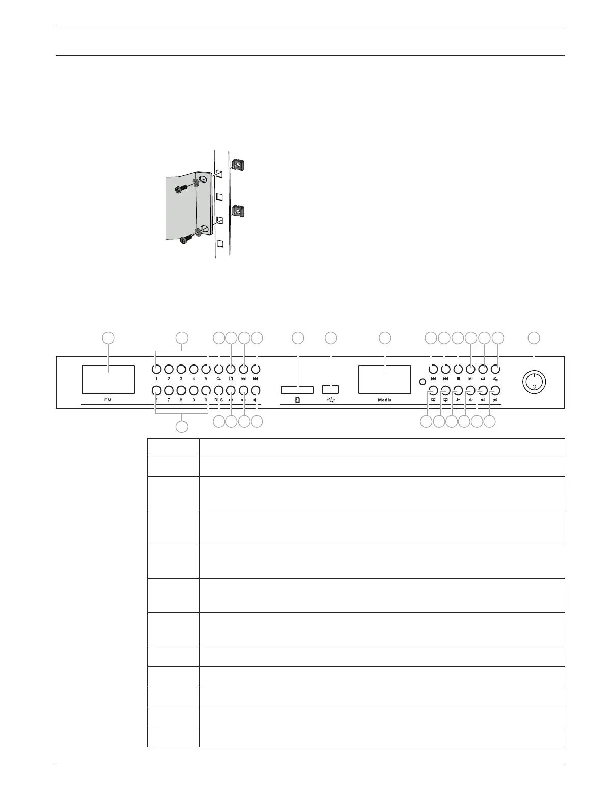 1 Display (FM radio): LCD panel shows information related to FM radio