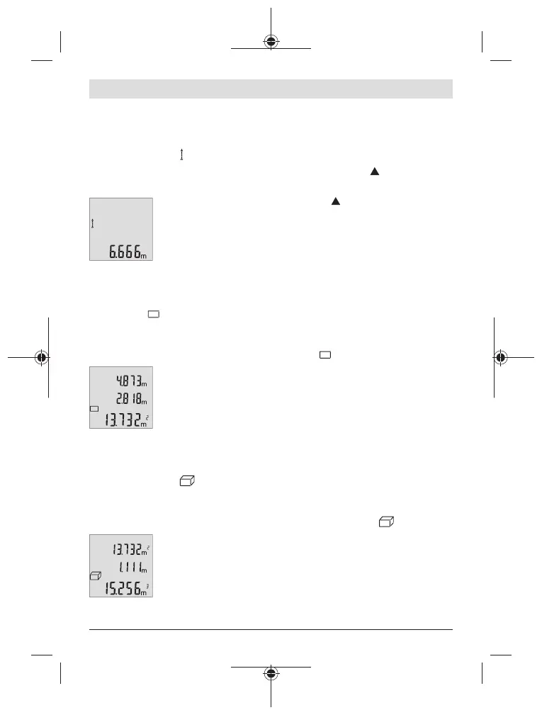 For length measurements, repeatedly press button (4)[Func] until the indicator for con-