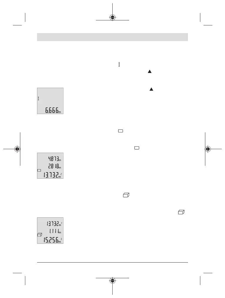 entre as três medições. O trajeto a medir pisca na indicação de medição de volume .