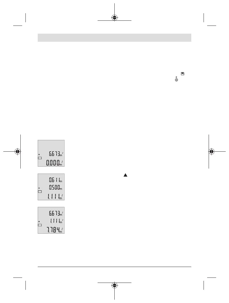 Prima a tecla (6) [+]. A área calculada é exibida no mostrador e o