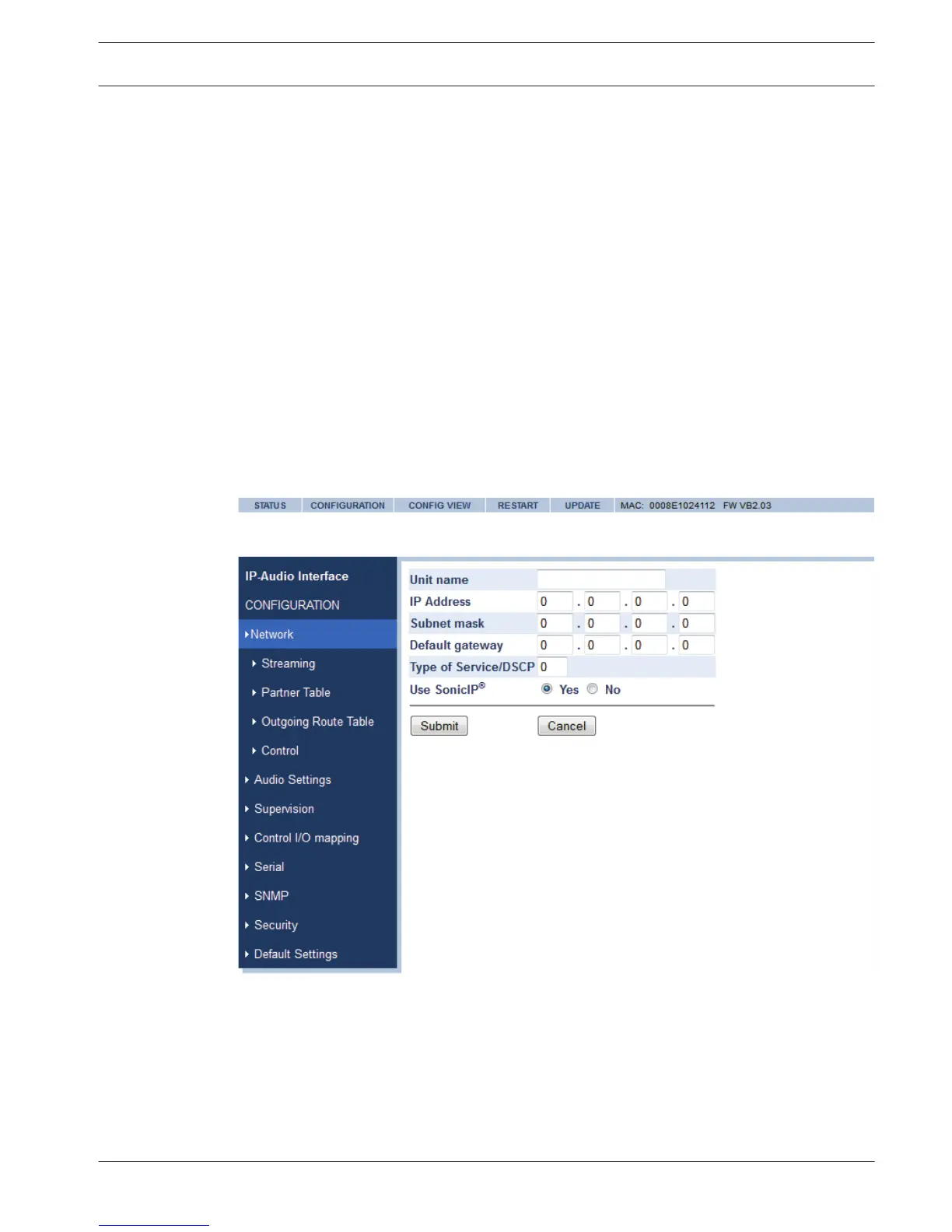 Click CONFIGURATION on top of the page. The Network menu on the left side is opened as a
