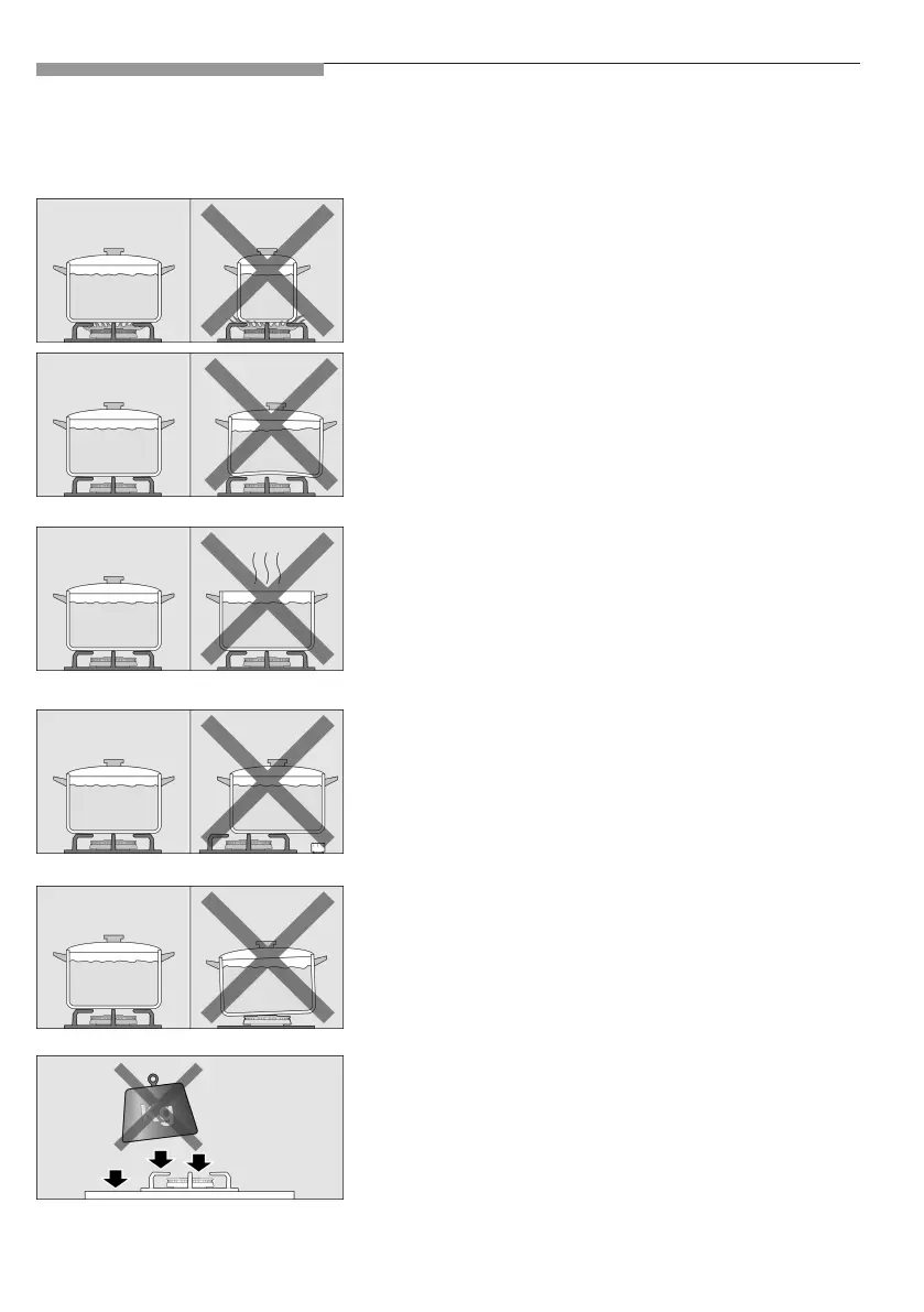 Ne placez pas les récipients grands sur les brûleu-