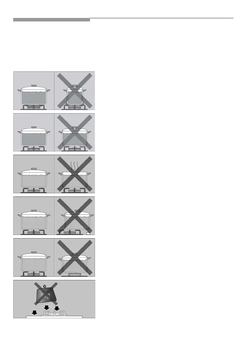 Gebruik geen kleine pannen op grote branders. De
