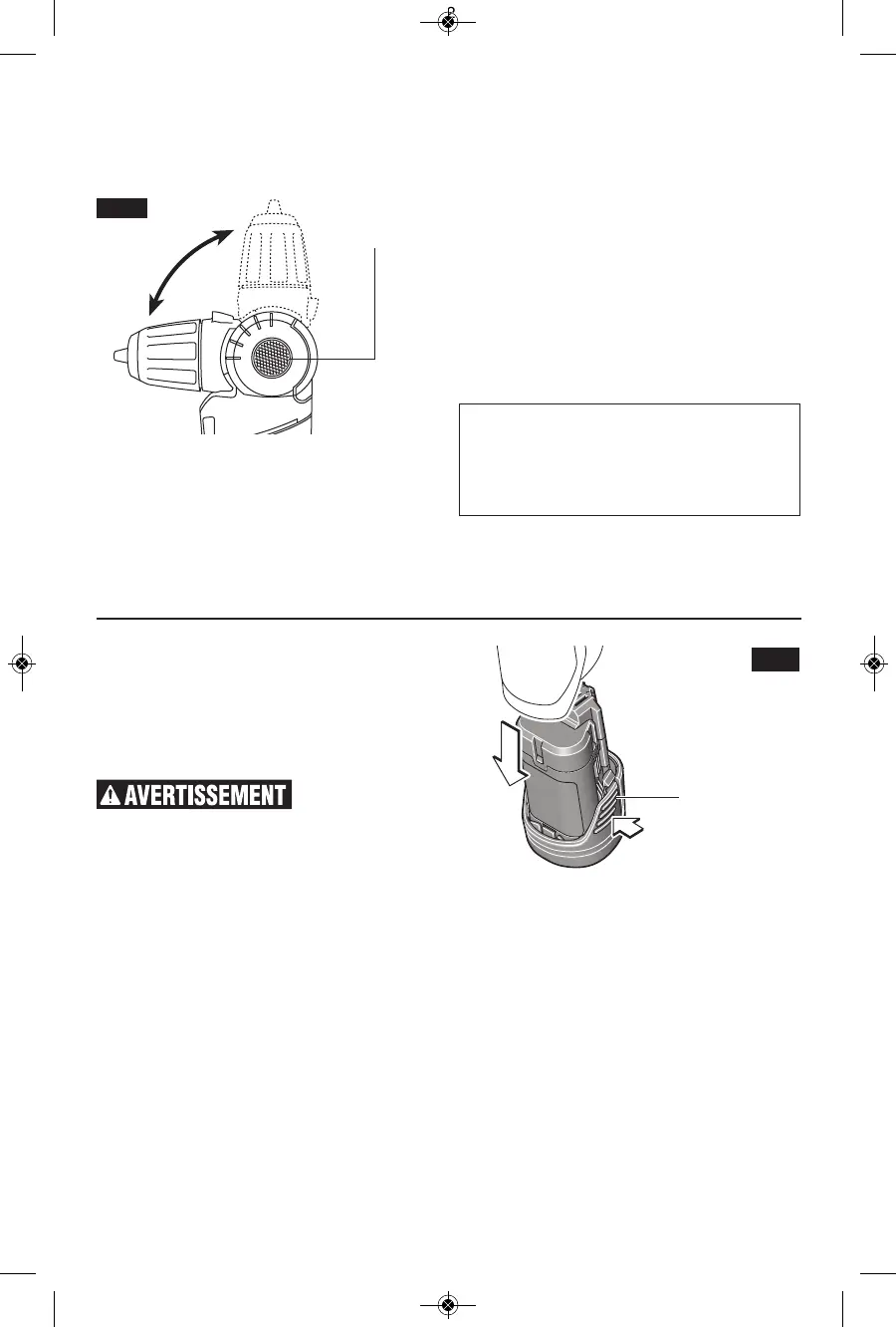 dans l'outil. Le bloc-piles risquerait de tomber pendant