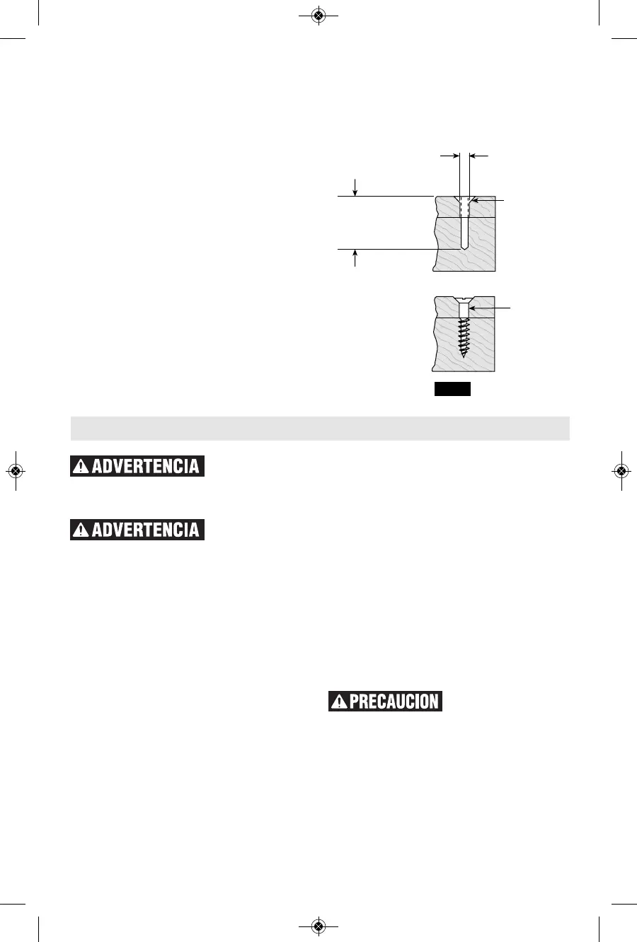 agujero con 2/3 del diámetro del tornillo. Si el material
