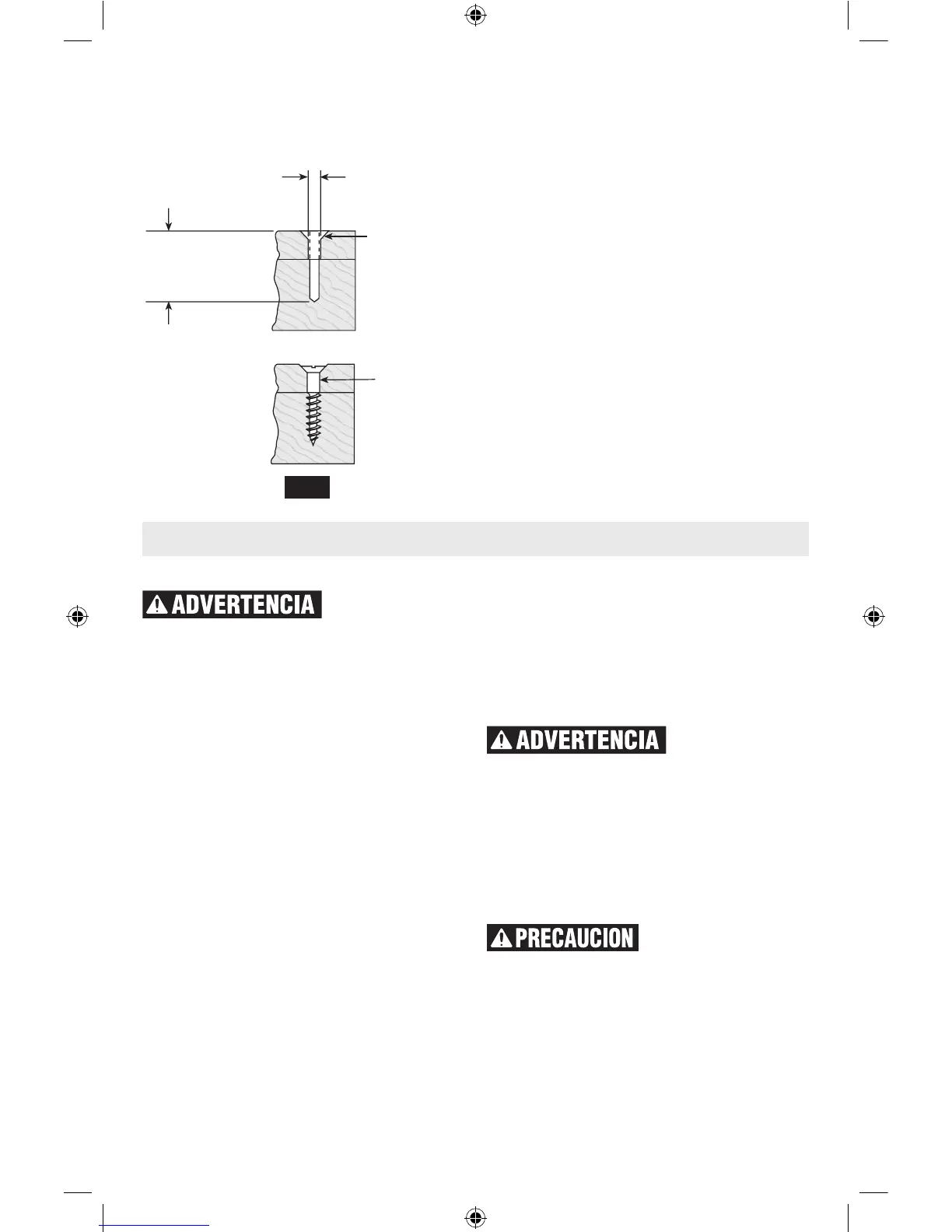 lane el agujero para hacer que el tornillo quede al ras