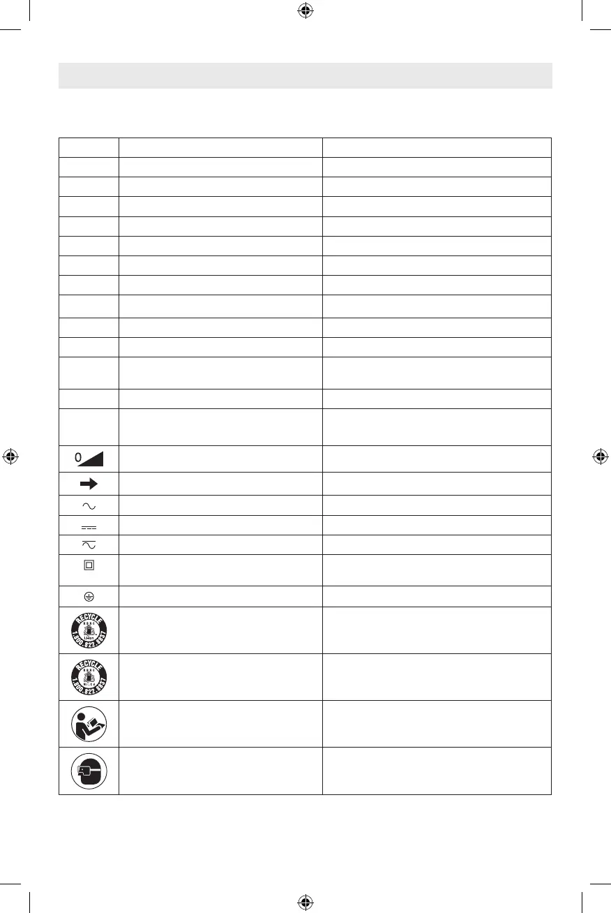 IMPORTANT: Certains des symboles suivants peuvent être utilisés sur votre outil. Veuillez les étudier et apprendre