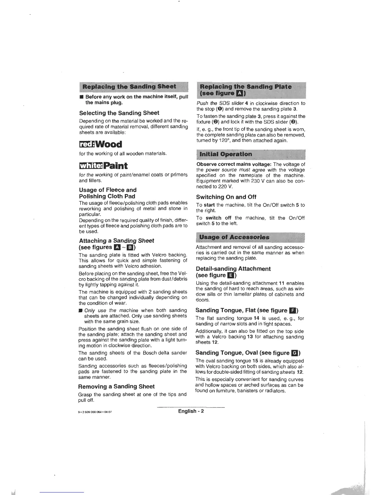 Bosch PSM160 A - Sanding Sheet and Plate Procedures; Replacing the Sanding Sheet; Replacing the Sanding Plate; Initial Operation and Controls