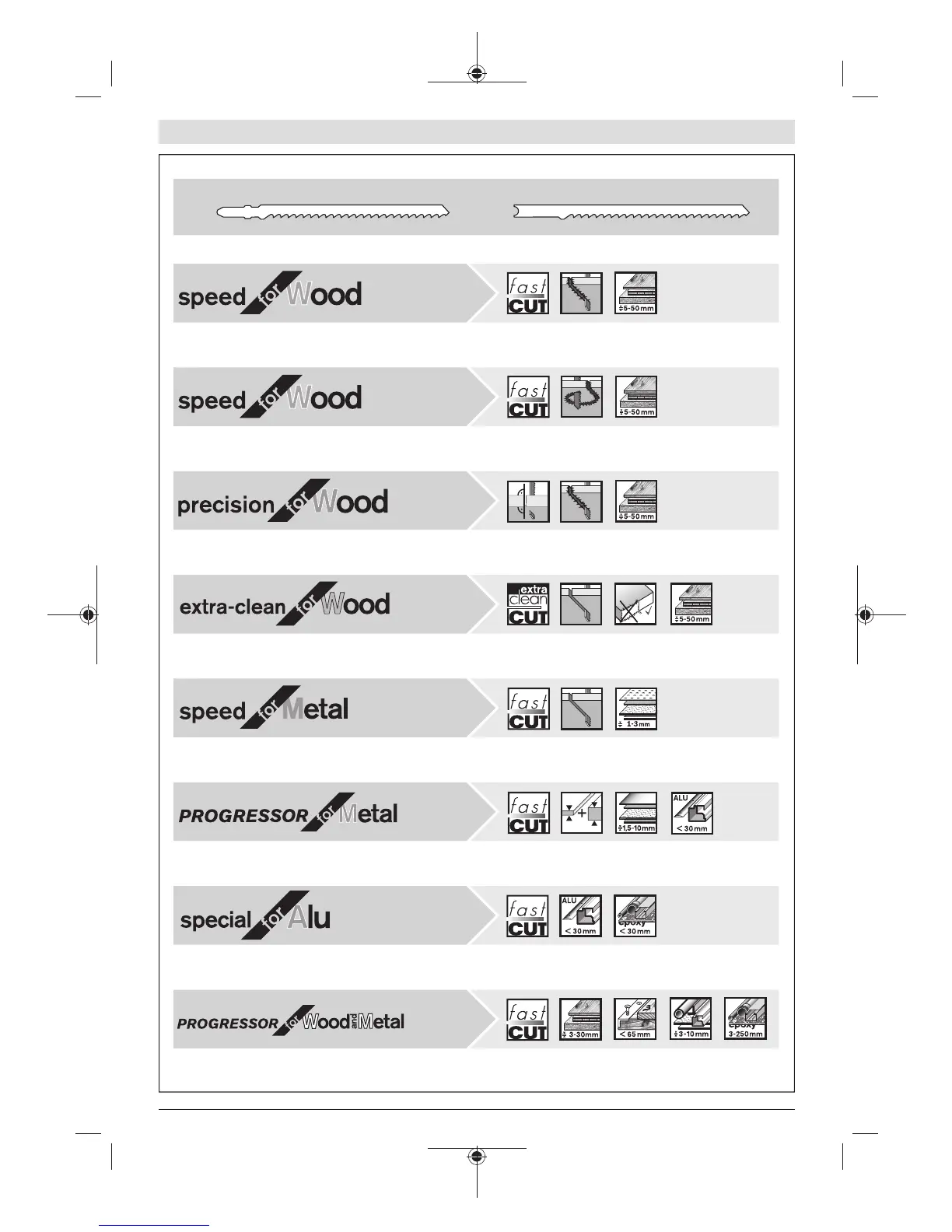 Bosch PST 60 - Accessories and After-Sales Service; Saw blade recommendations