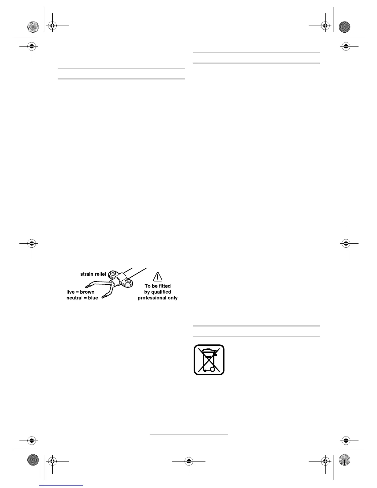 Do not connect the blue or brown wire to the earth ter-
