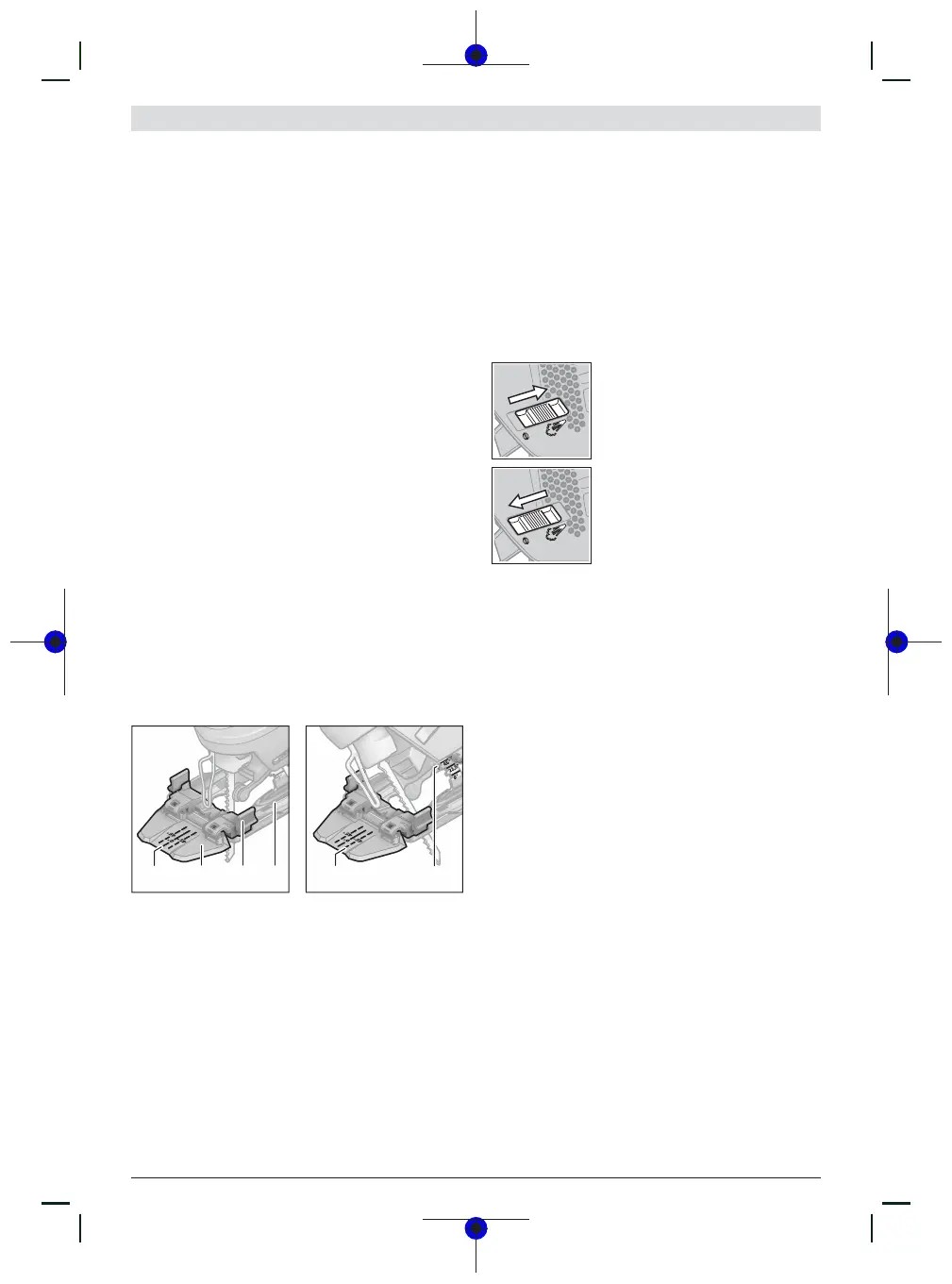 –Skjut därefter fotplattan (6) ända till anslaget i riktning