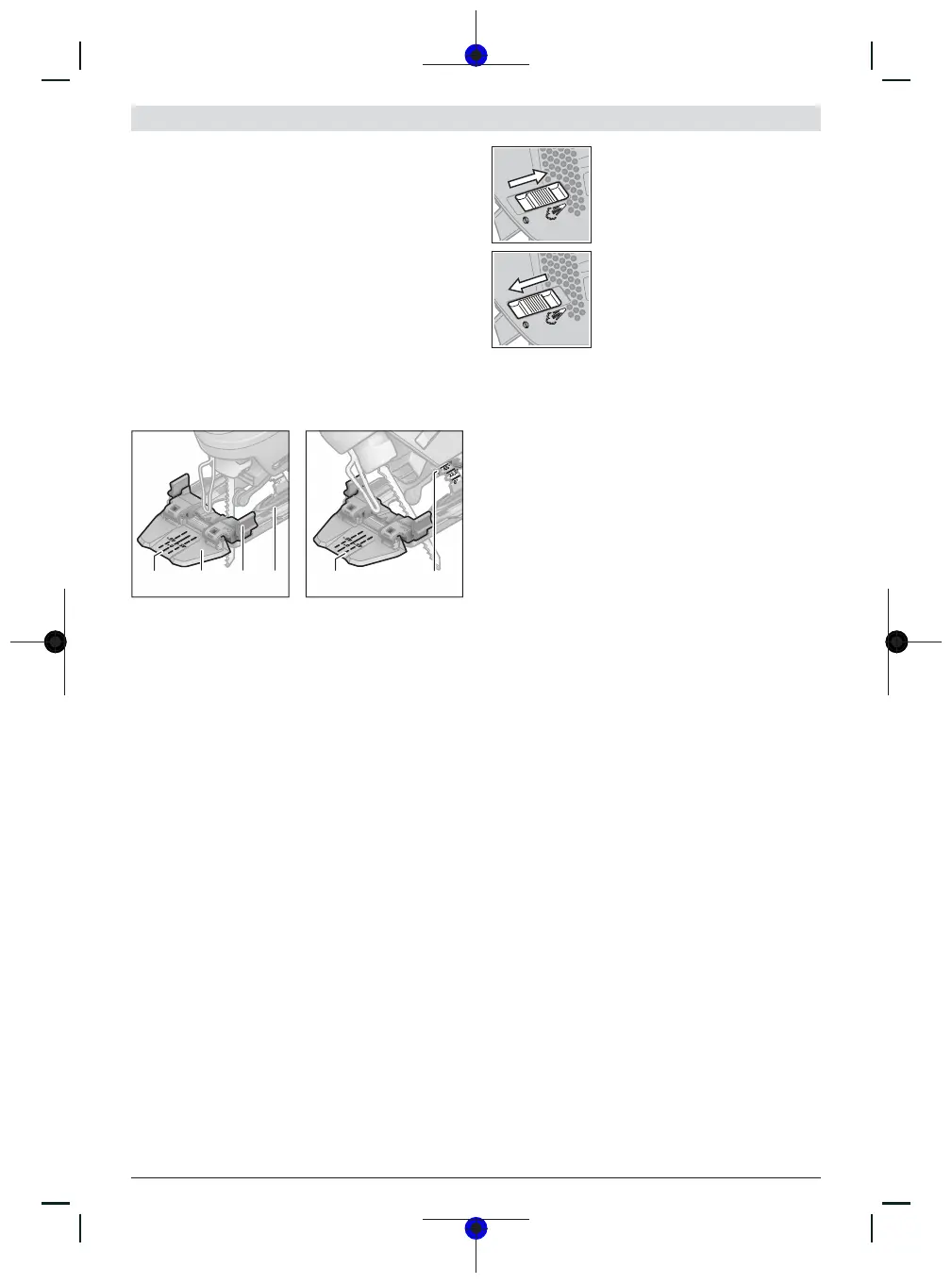 –Työnnä tämän jälkeen jalkalevyä (6) sahanterän (9) suun-