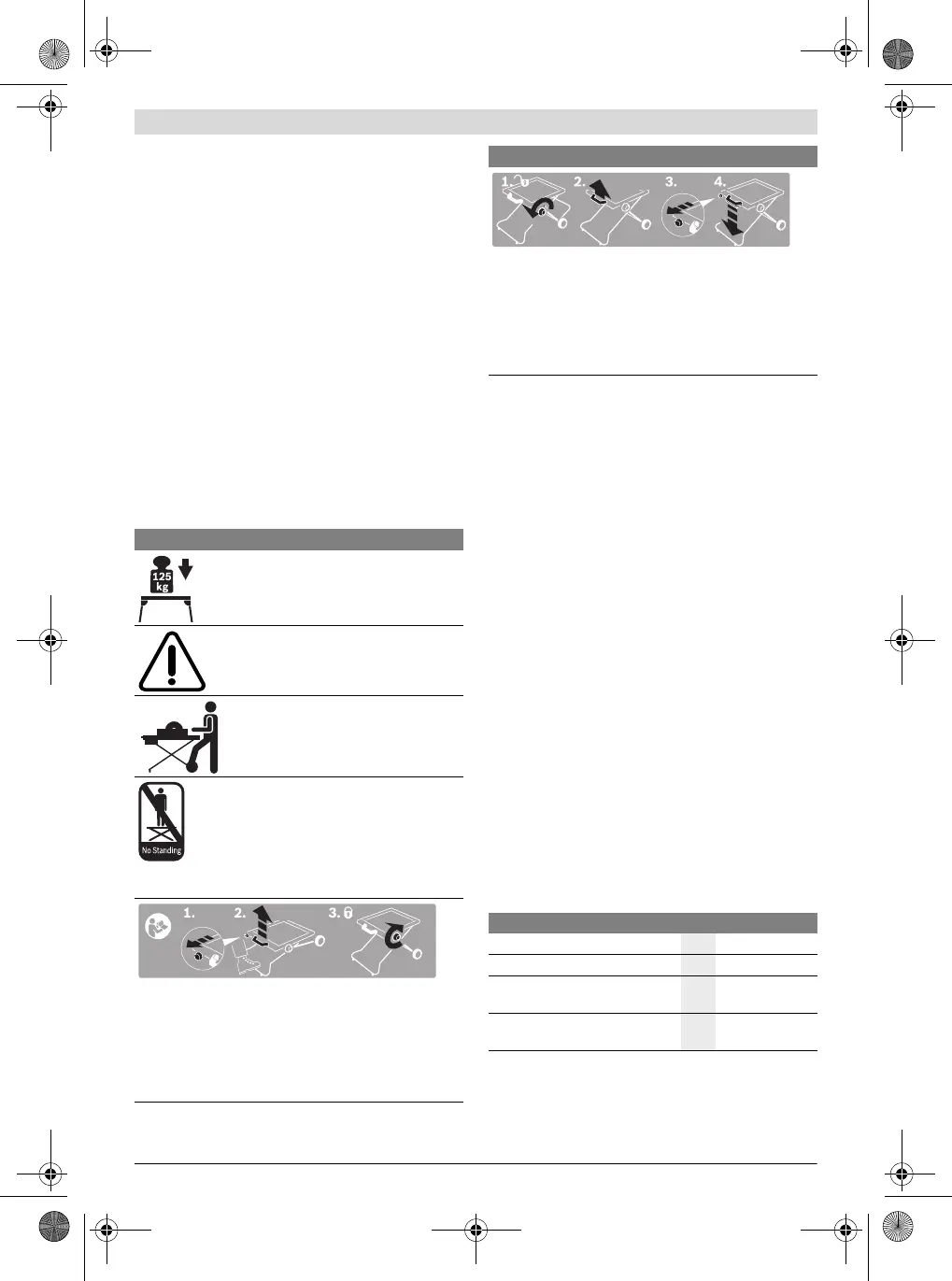 Hänvisar till enskilda moment vid hopfällning av arbetsbor-