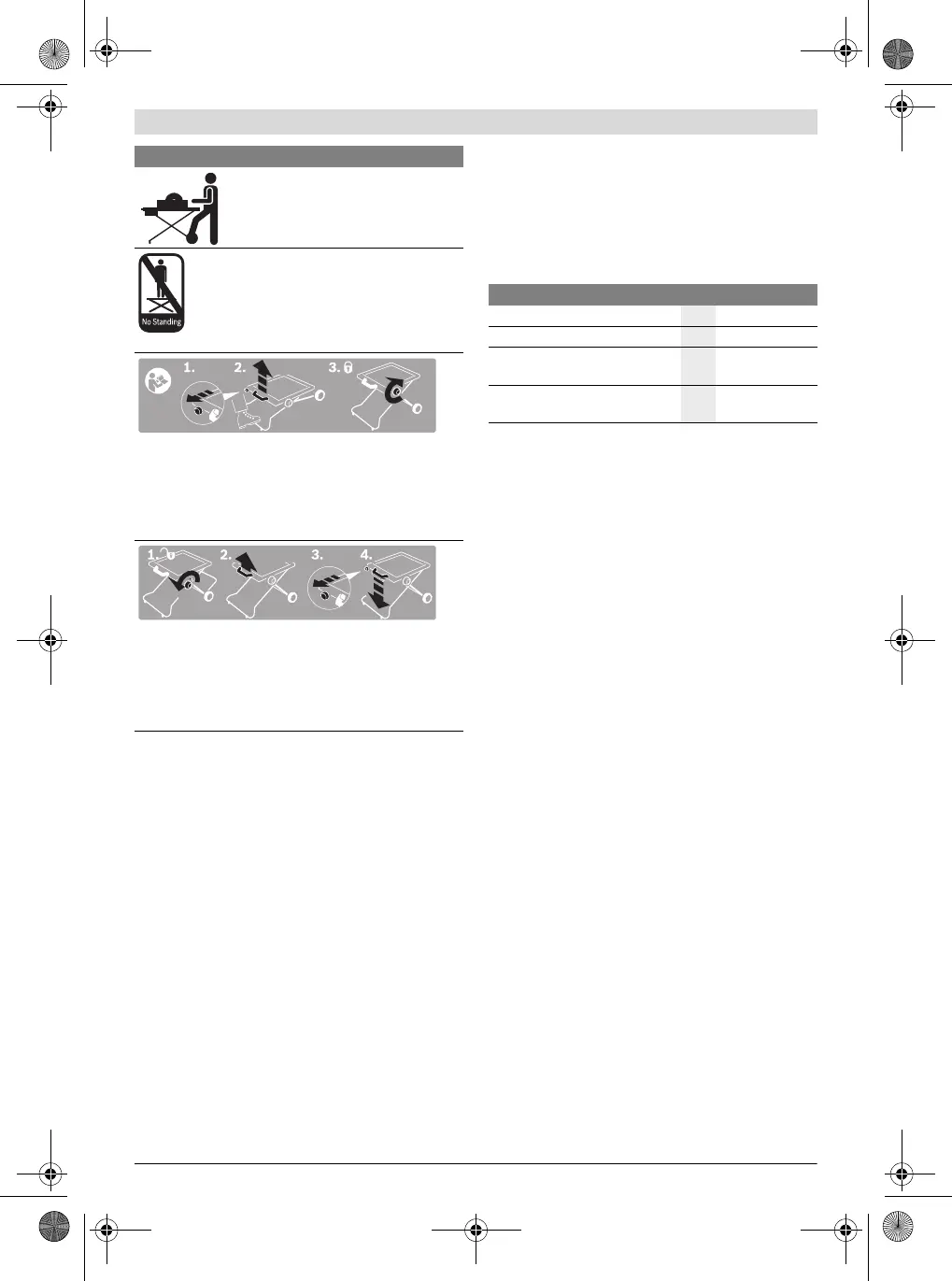 – Puneţi masa de lucru cu picioarele în jos pe podea.