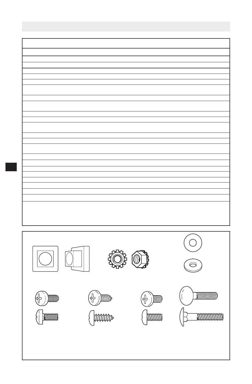 REMARQUE : Le sac de quincaillerie contient les fixations pour le montage de différents