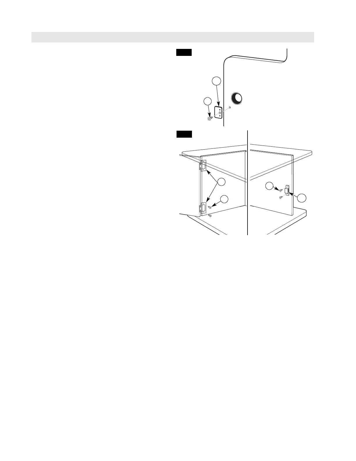 2.Sujete las bisagras (12) al panel izquierdo con dos