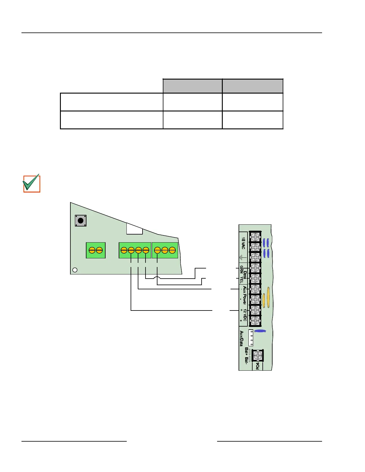 Connect the panel’s Data and Aux Power terminals to the DX2010 module as shown in Figure 17. Refer to