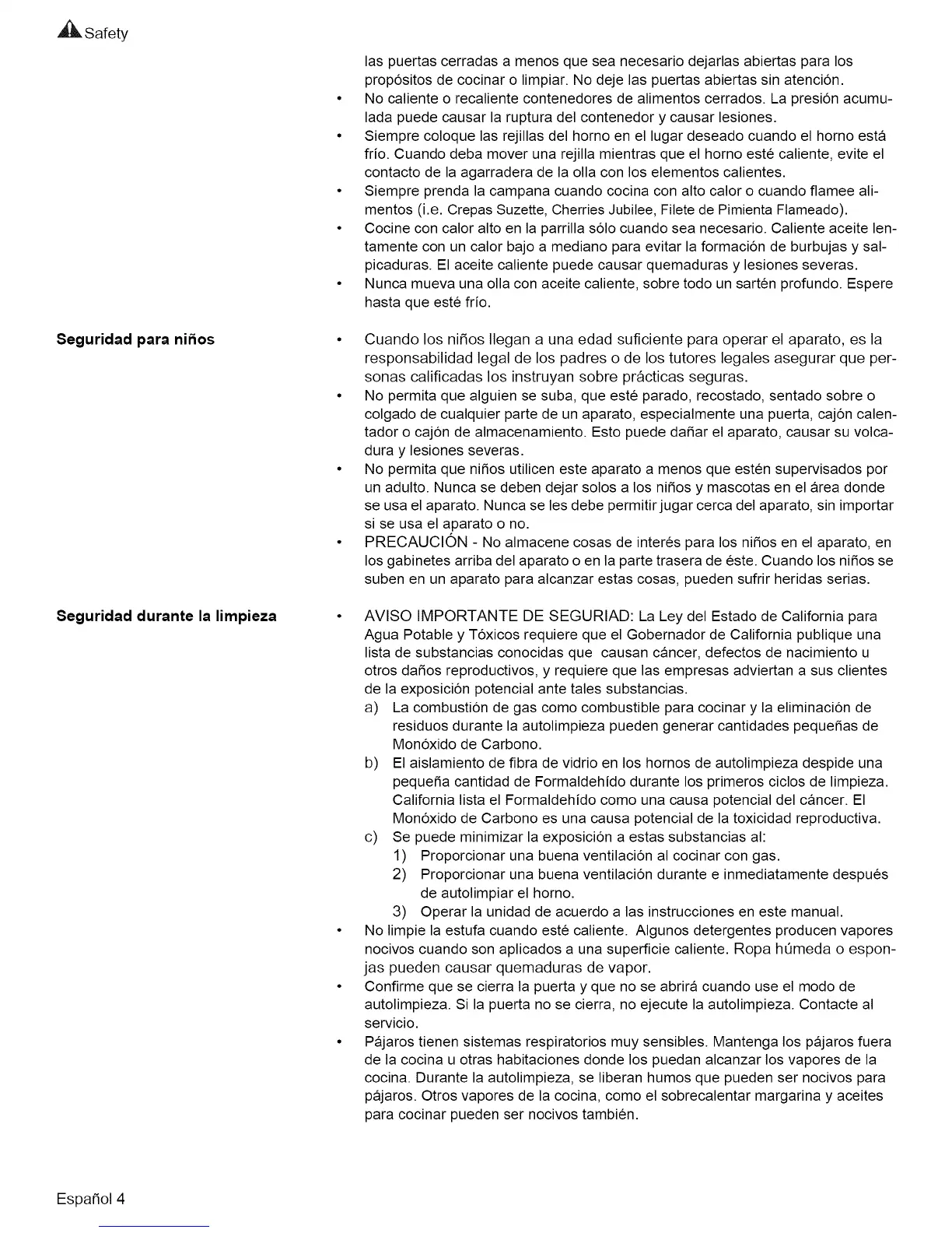 • AVlSO IMPORTANTE DE SEGURIAD: La Ley del Estado de California para