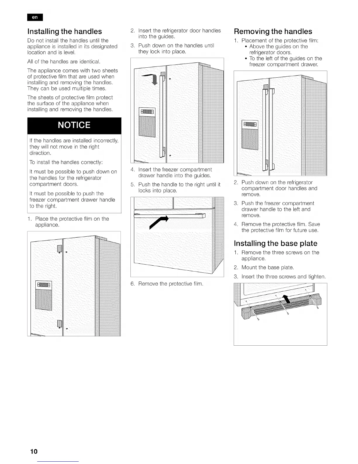installing and removing the handles.