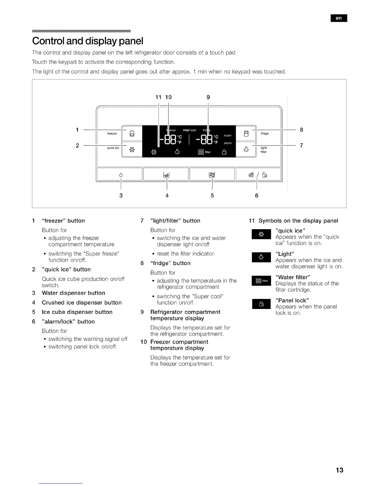 The control and display panel on the left refrigerator door consists of a touch pad.
