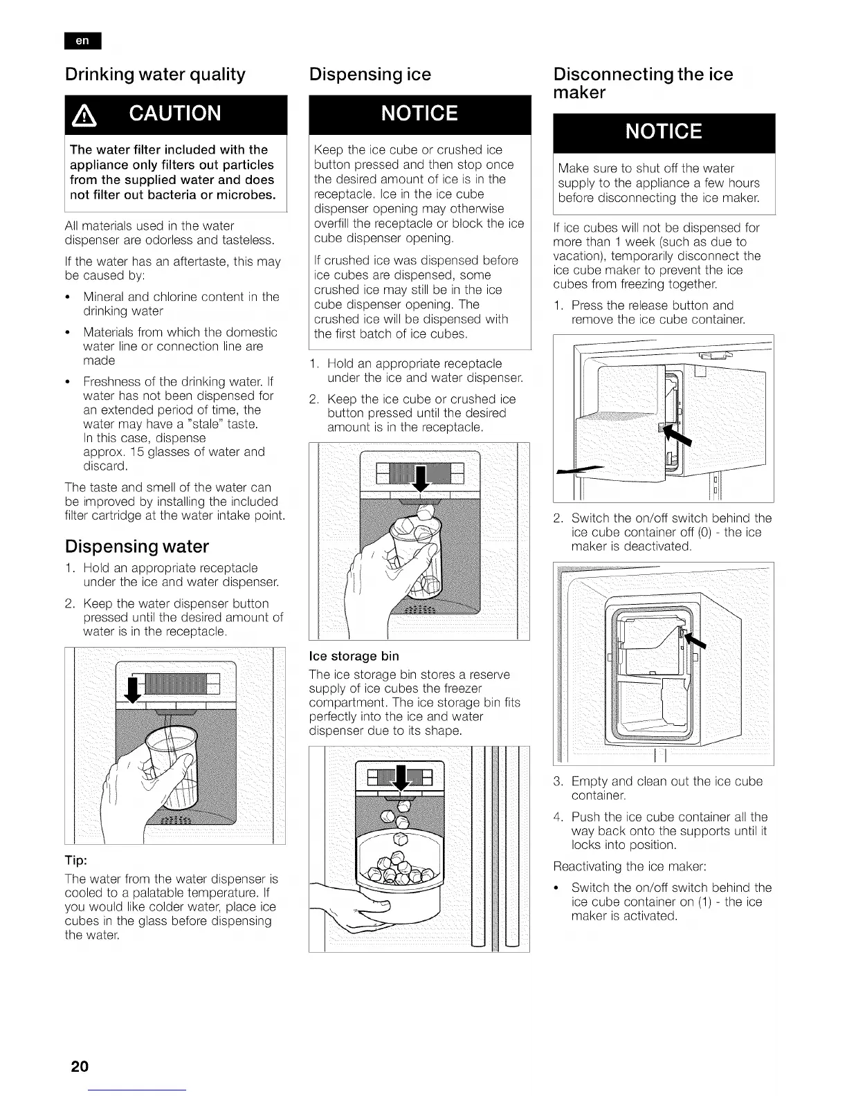 Drinking water quality Dispensing ice Disconnecting the ice