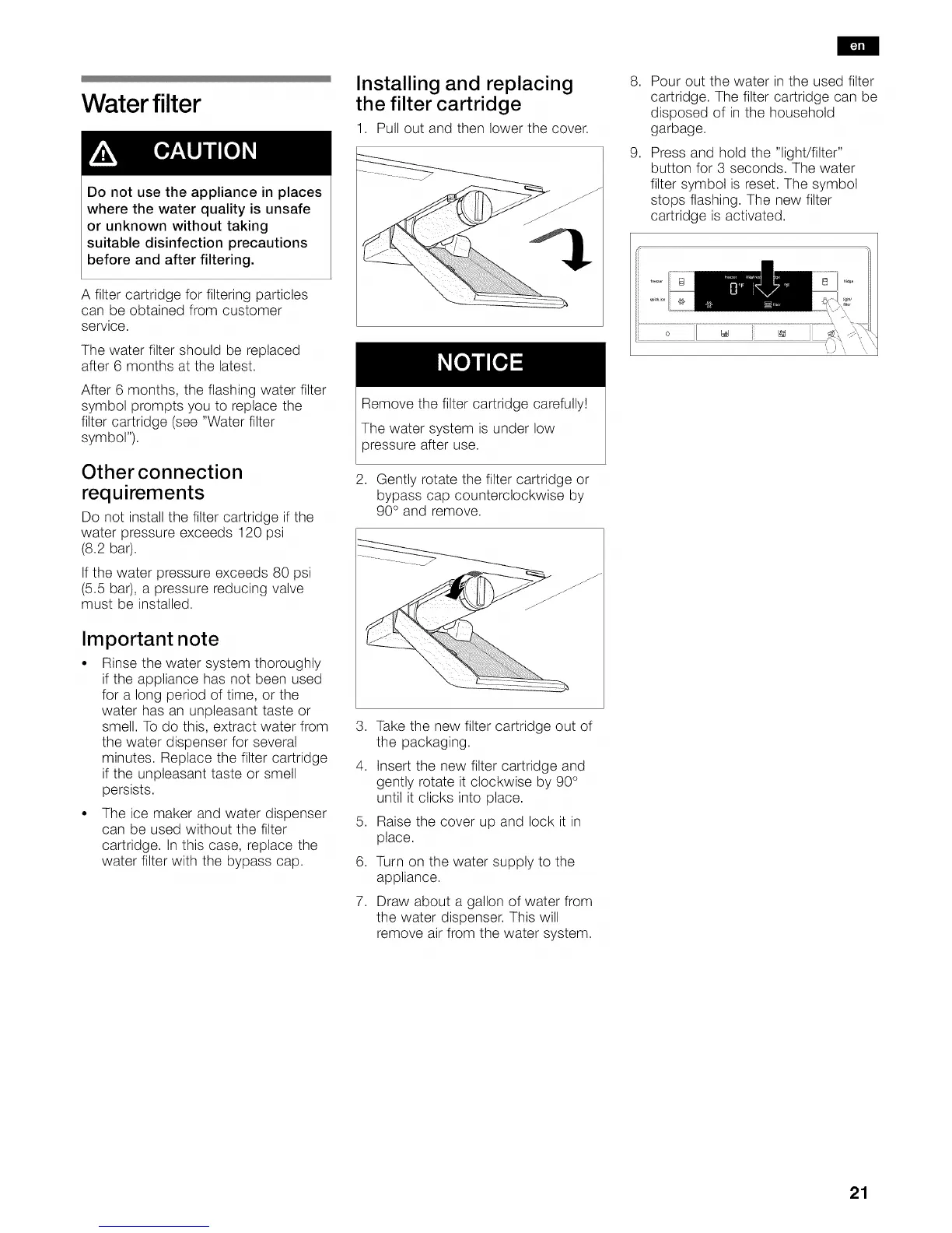 filter cartridge (see "Water filter