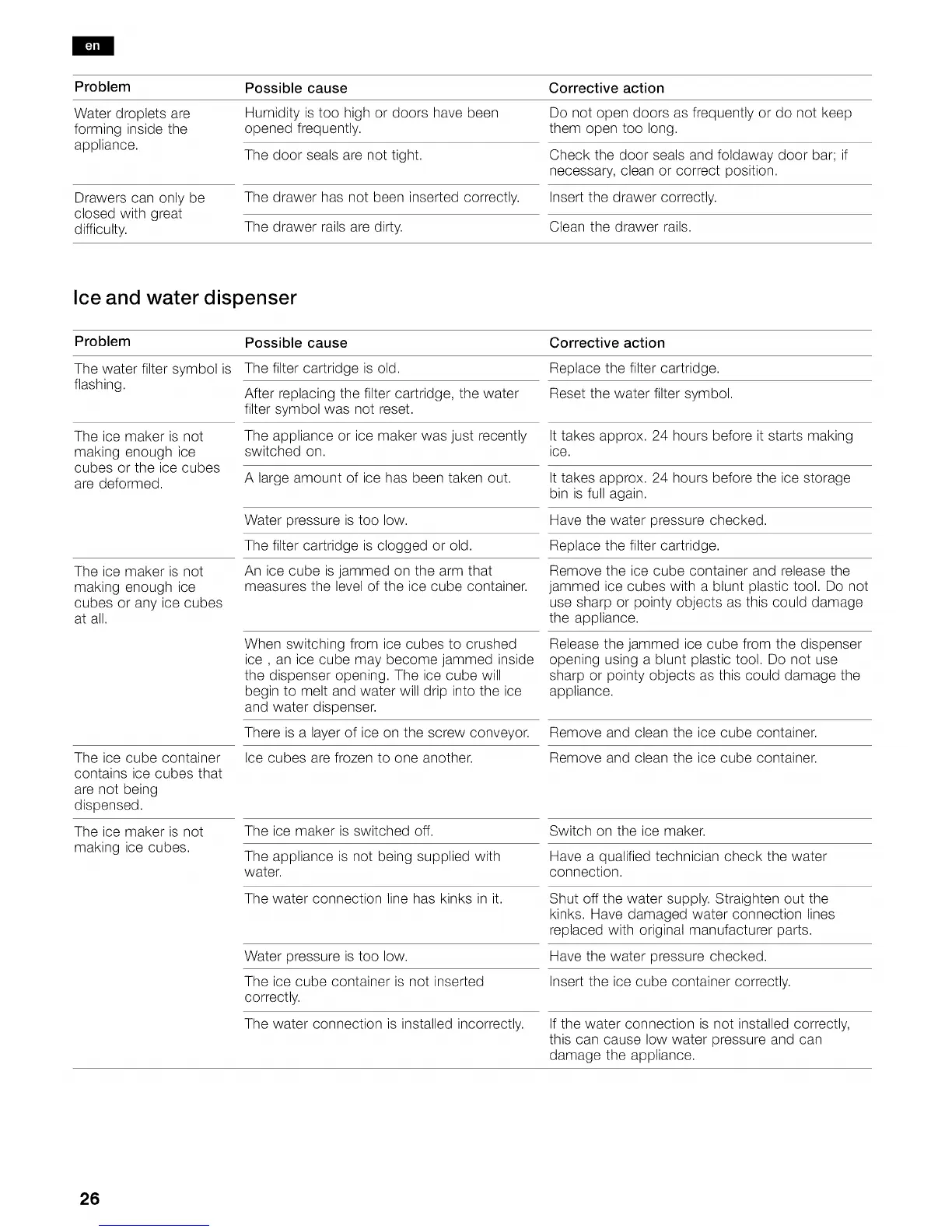 Possible cause Corrective action