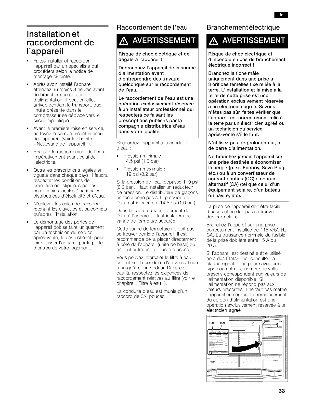 • Faites installer et raccorder