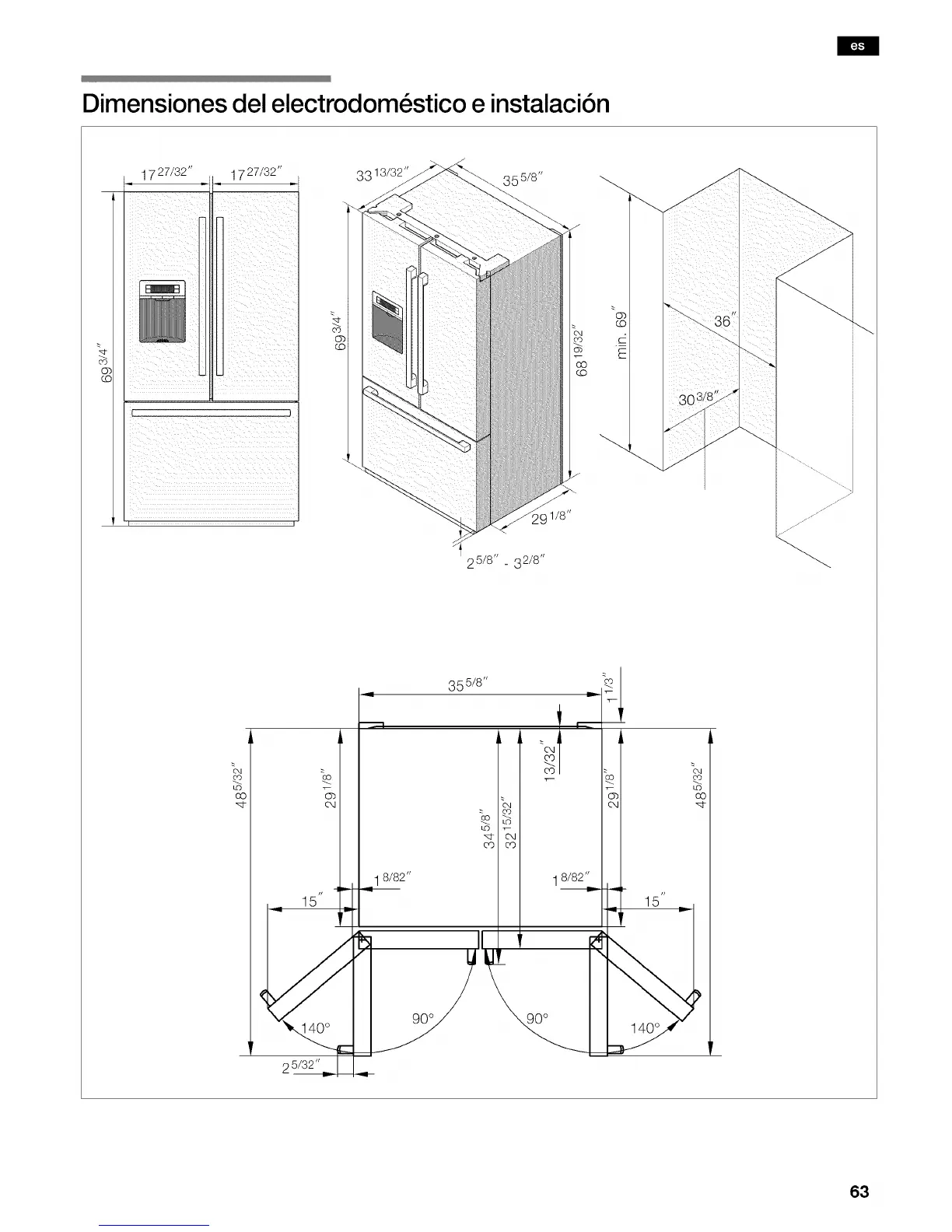 Bosch Refrigerator - Dimensiones del Electrodomestico E Instalacion