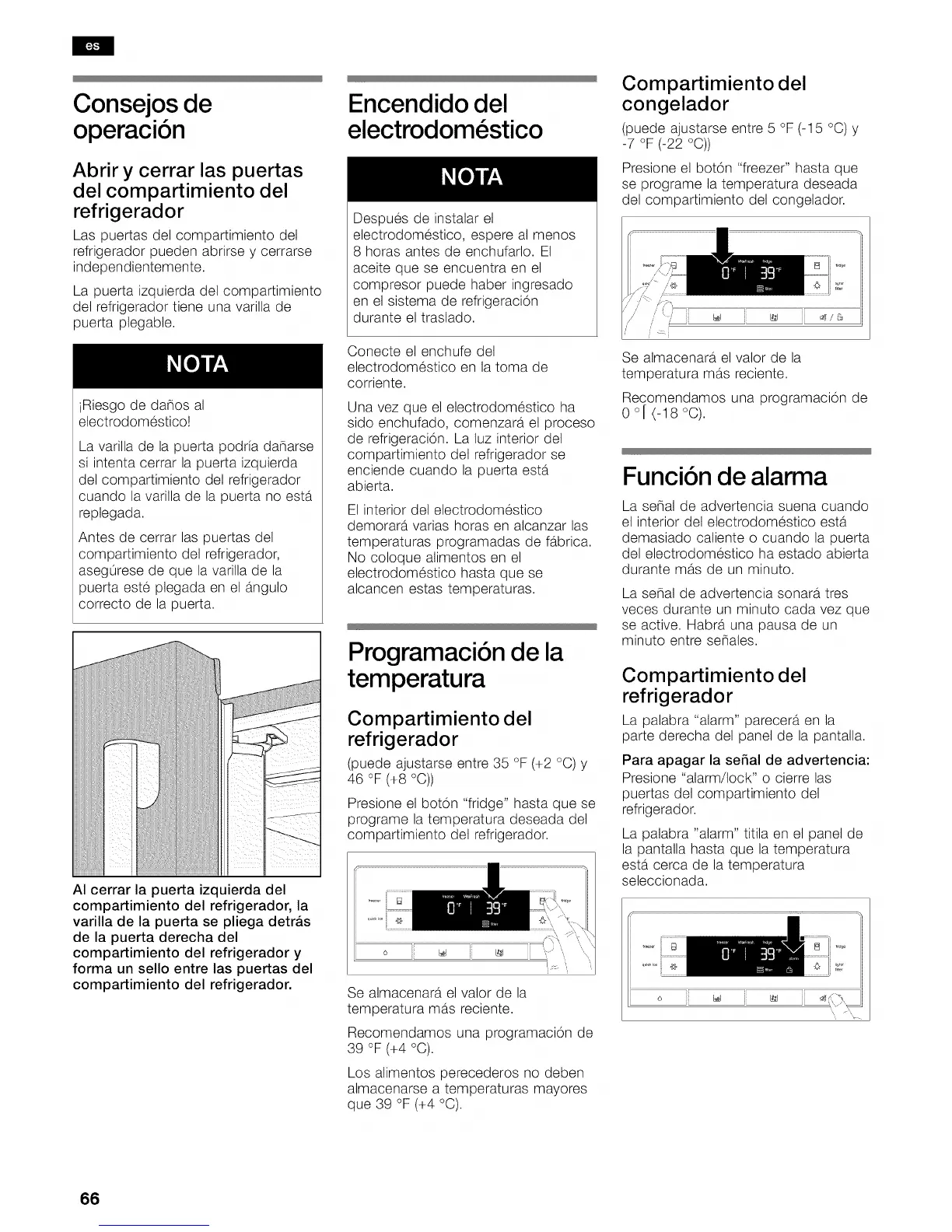 (puede ajustarse entre 35 °F (+2 °C) y