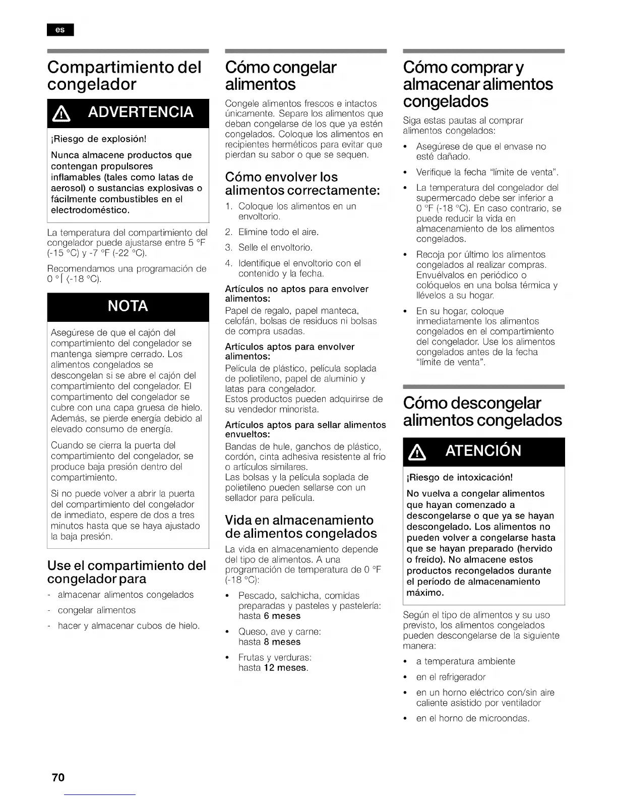 congelados. Coloque los alimentos en