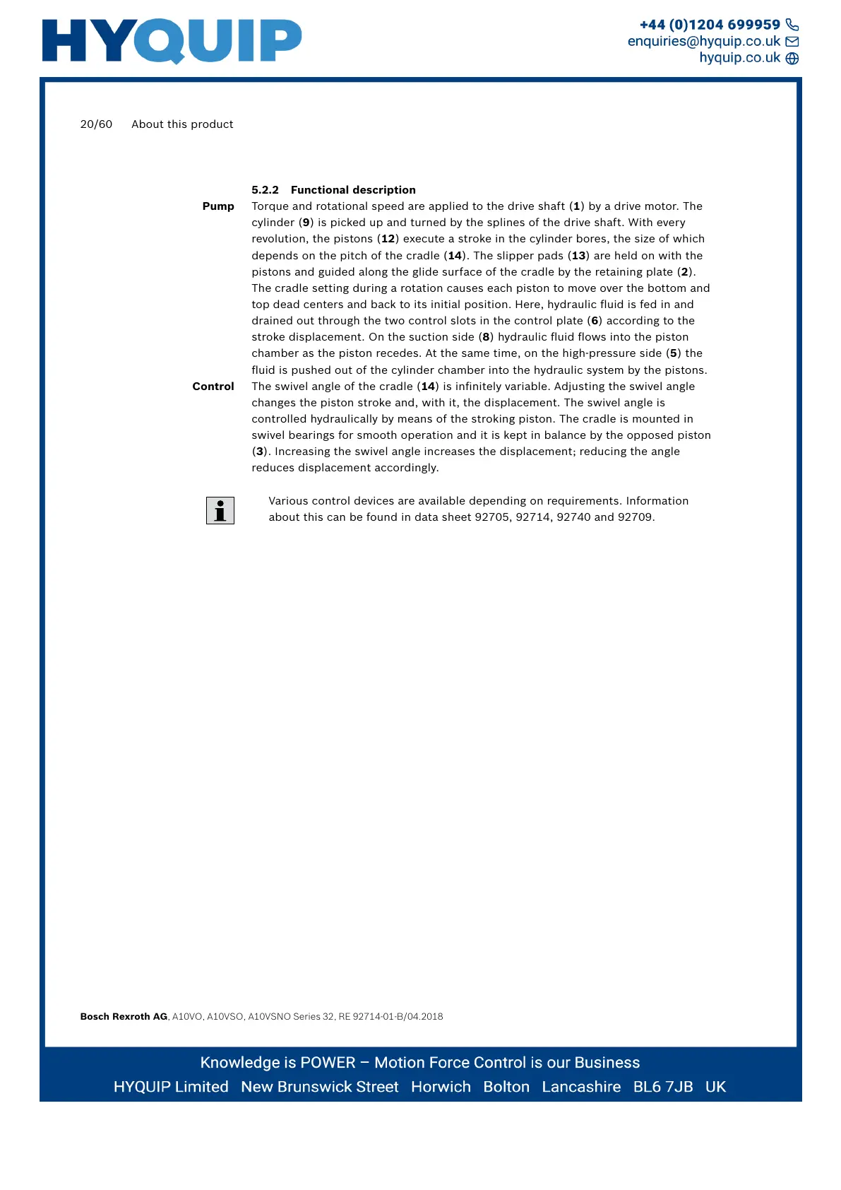 Bosch Rexroth AG, A10VO, A10VSO, A10VSNO Series 32, RE 92714-01-B/04.2018