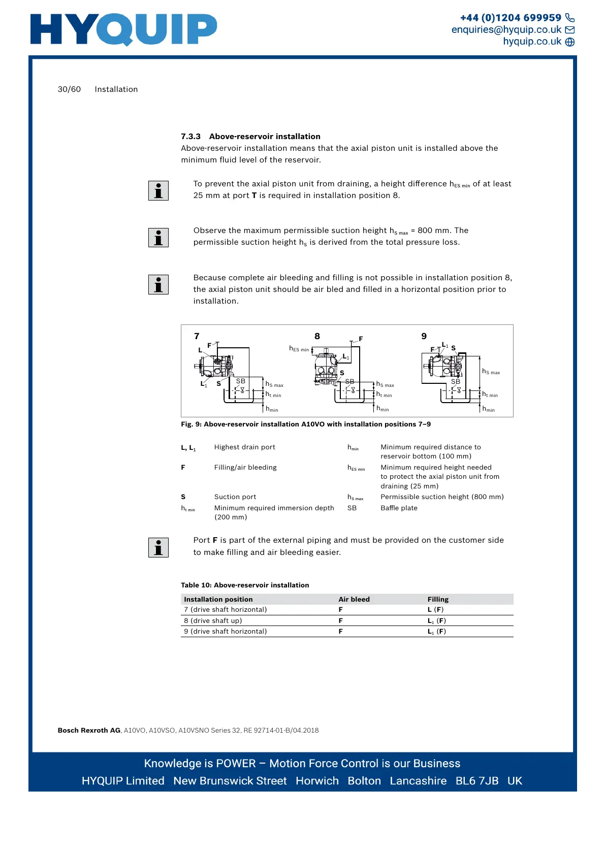 Fig. 9: Above-reservoir installation A10VO with installation positions 7–9