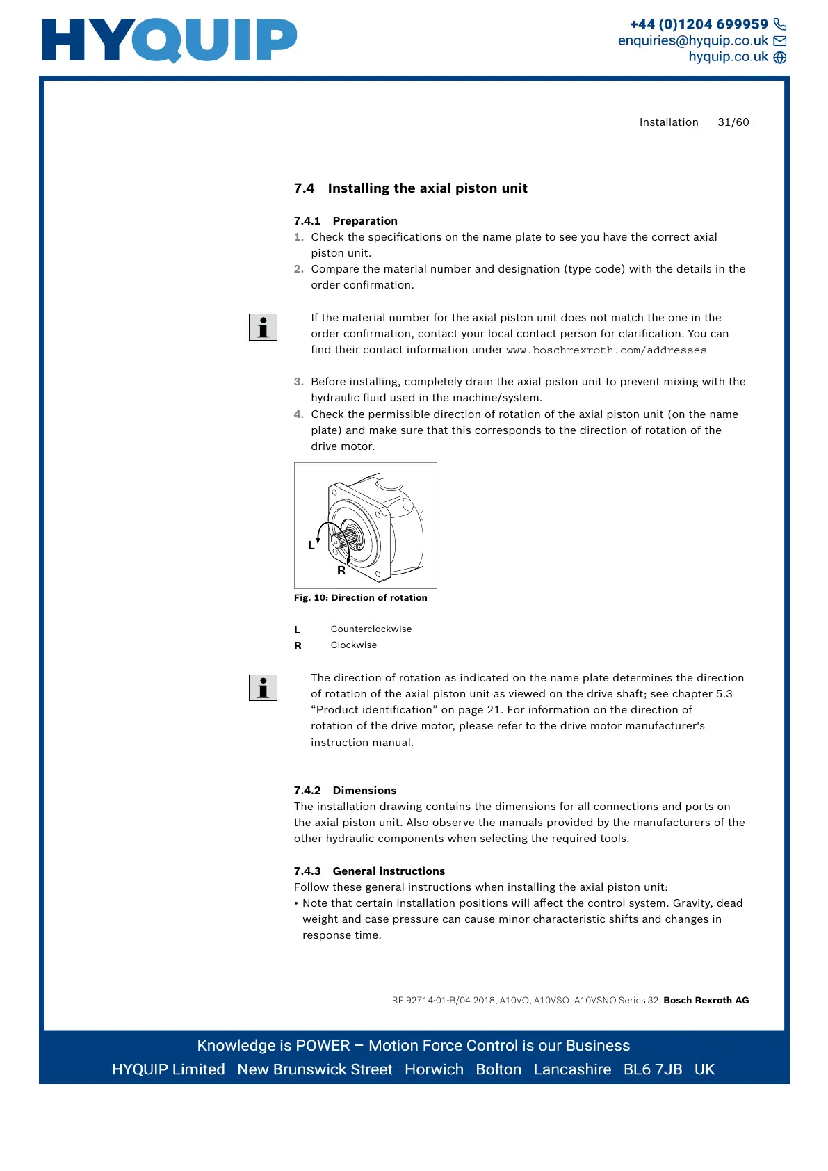 4. Check the permissible direction of rotation of the axial piston unit (on the name