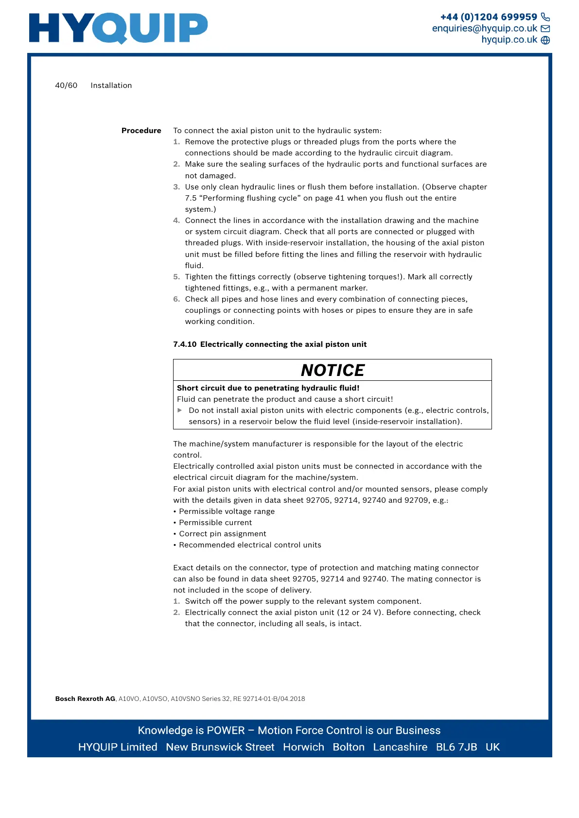 7.4.10 Electrically connecting the axial piston unit