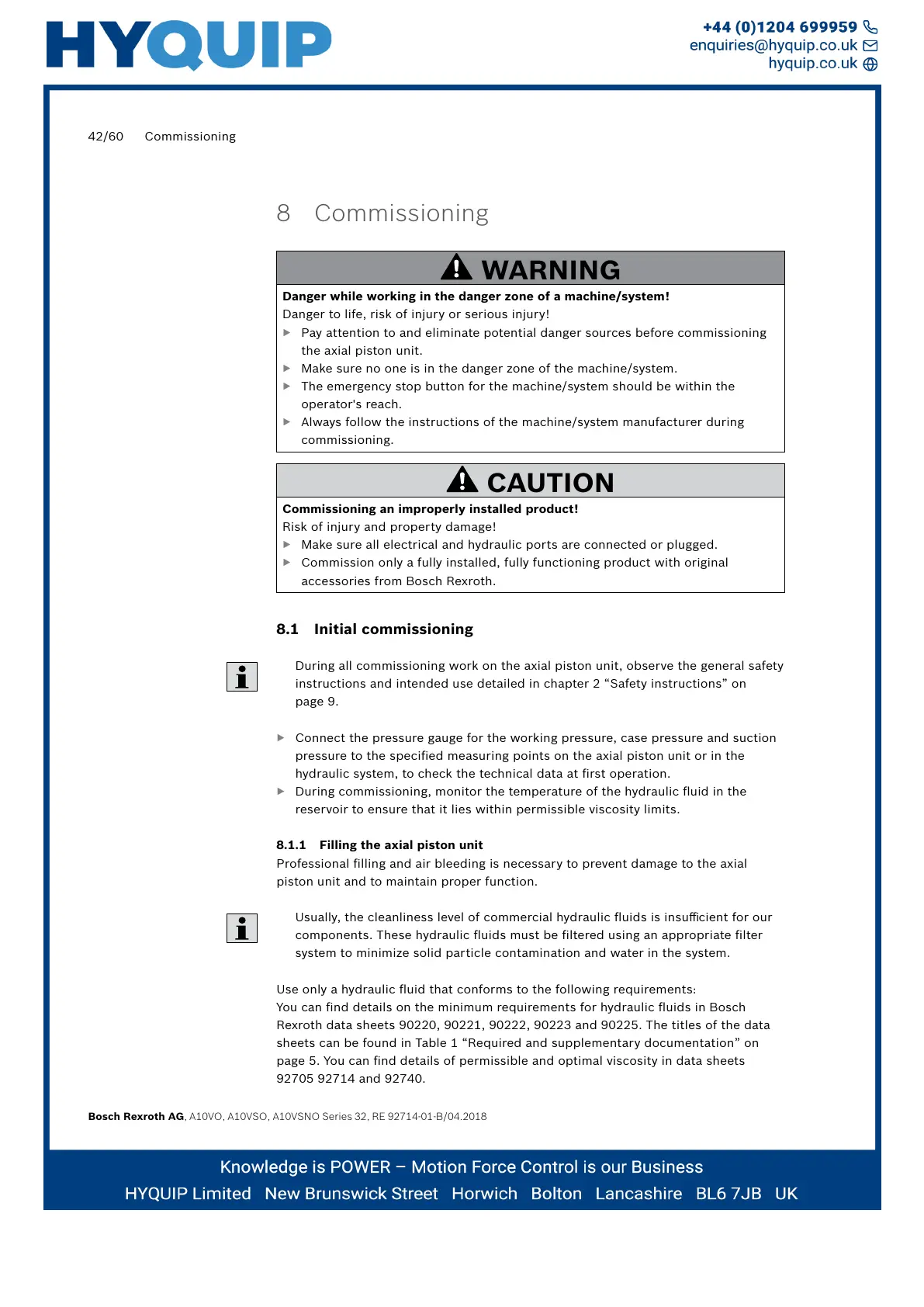 ▶ During commissioning, monitor the temperature of the hydraulic fluid in the