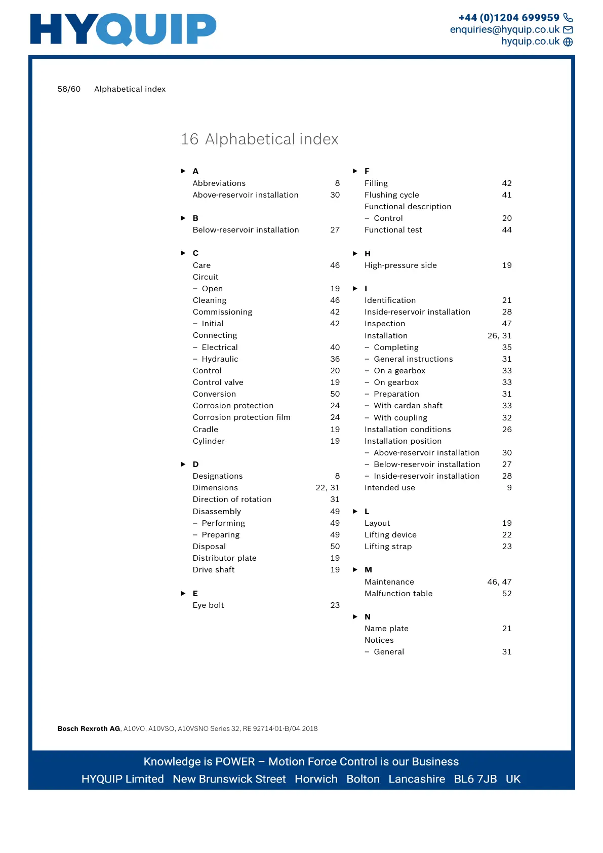58/60 Alphabetical index