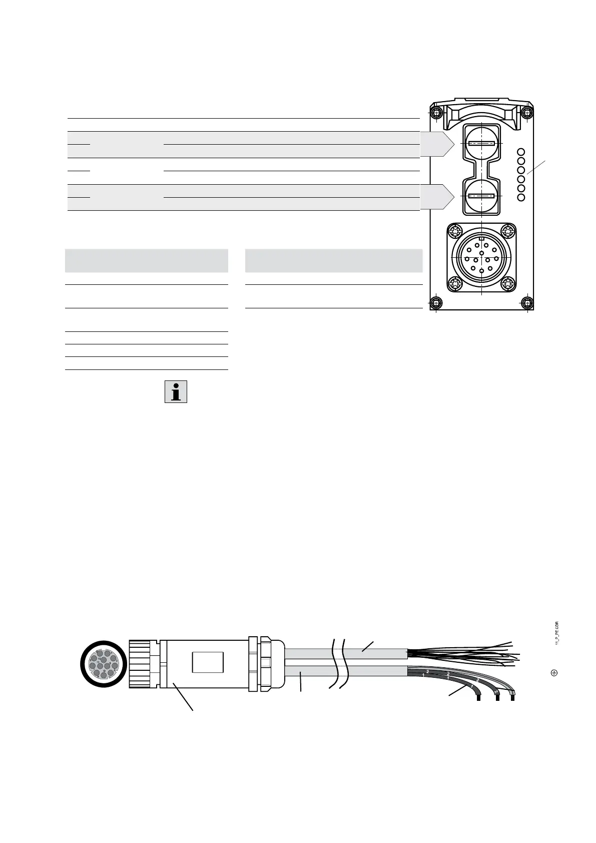 “1” to +24 V and the one labeled “2” to L0 (Ground). The yellow/green wire must be