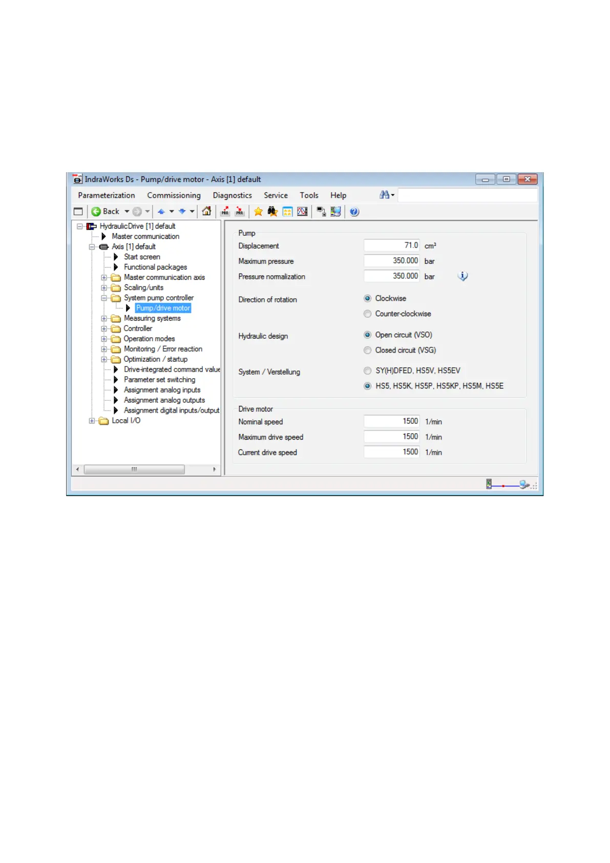 Via the structure tree “System pump controller” → “Pump/drive motor” you can