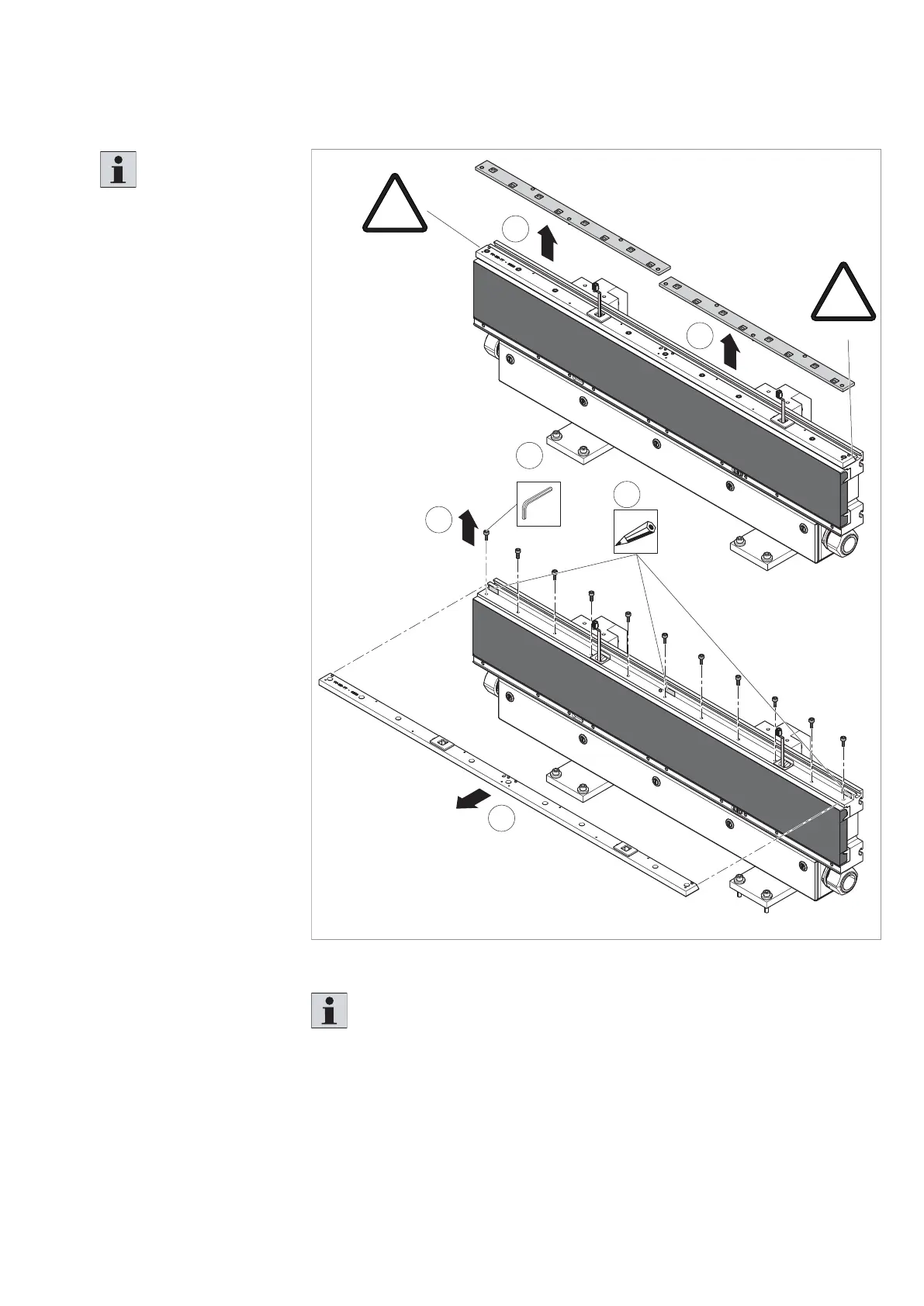 • The V-grooves on both sides of the upper V-rail prevent lifting of the rail.
