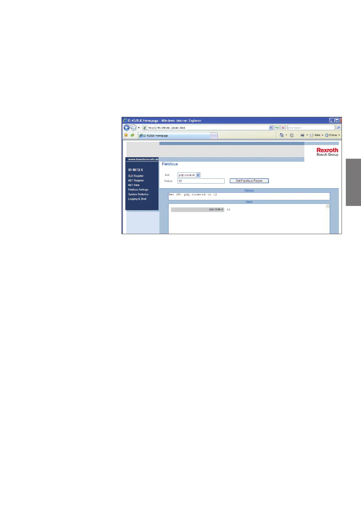 Enter the desired value in the input field, then submit with Set Fieldbus Param.